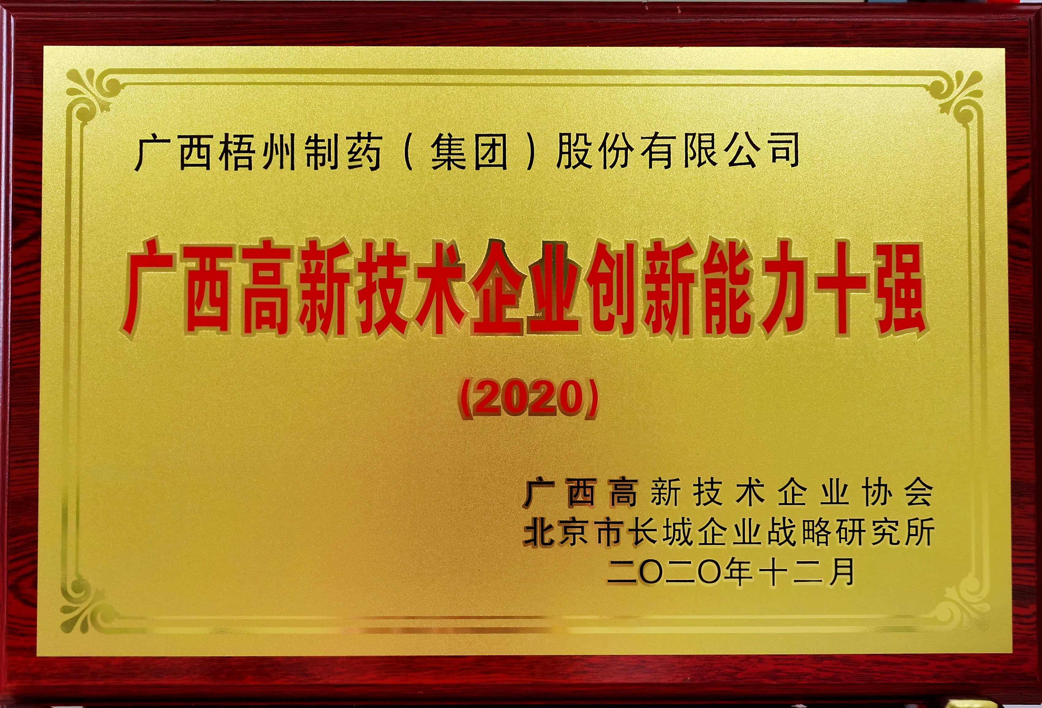 榮獲2020年廣西高新技術企業創新能力十強稱號