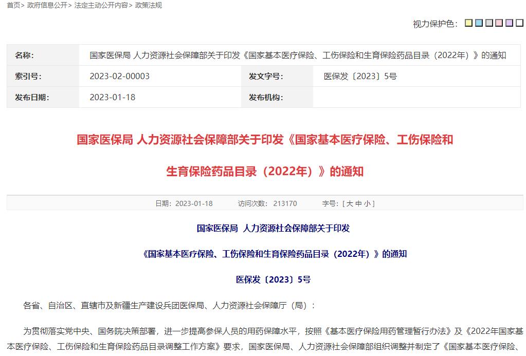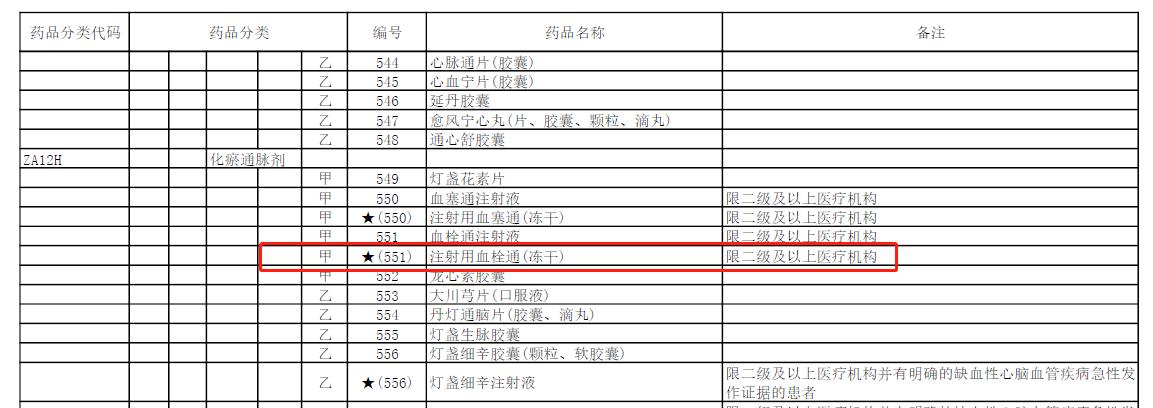2023年1月18日,國家醫療保障局正式對外公布2022年《國家基本醫療保險、工傷保險和生育保險藥品目錄》,其中梧州制藥公司獨家生產的國家基藥——注射用血栓通(凍干)由2021年“限二級及以上醫療機構的中風偏癱或視網膜靜脈阻塞患者”調整為:“限二級及以上醫療機構”。并于2023年3月1日起正式執行。