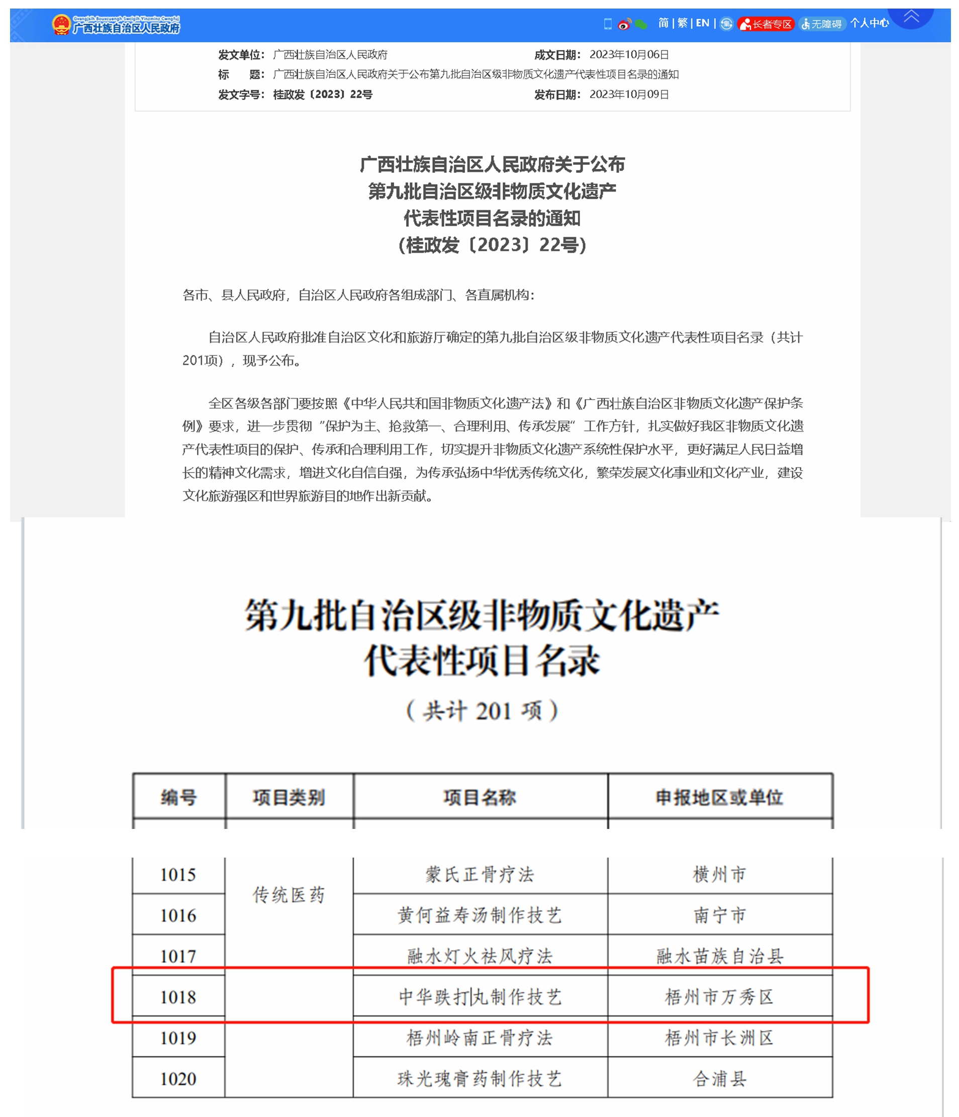 近日,廣西壯族自治區人民政府公布了第九批自治區級非物質文化遺產代表性項目名錄,梧州制藥申報的中華跌打丸制作技藝成功入選,榜上有名。