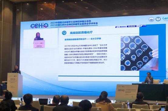 會(huì)上,中山大學(xué)腫瘤防治中心郭琤琤教授為注射用去水衛(wèi)矛醇納入《膠質(zhì)瘤化療中國(guó)專家共識(shí)》進(jìn)行詳細(xì)的解讀。她表示,去水衛(wèi)矛醇主要作用機(jī)制是由-鳥(niǎo)嘌呤DNA烷化,具有不受MGMT影響,對(duì)膠質(zhì)瘤細(xì)胞增殖有較高抑制率,血腦屏障(BBB)通過(guò)率較高等優(yōu)點(diǎn)。“去水衛(wèi)矛醇聯(lián)合放療治療具有-甲基鳥(niǎo)嘌呤-DNA甲基轉(zhuǎn)移酶 (MGMT)基因未甲基化啟動(dòng)子的新確診的多形性膠質(zhì)母細(xì)胞瘤 (GBM)患者的開(kāi)放性2期臨床研究”項(xiàng)目顯示:MGMT非甲基化的GBM患者中發(fā)現(xiàn)中位無(wú)進(jìn)展生存期可達(dá)9.5個(gè)月,其中27.6%患者無(wú)病生存超過(guò)1年,48.3%患者使用超過(guò)10周期。為醫(yī)師在臨床應(yīng)用中提供更多的依據(jù),有機(jī)會(huì)提高M(jìn)GMT非甲基化的膠質(zhì)瘤患者療效,增加患者生存獲益。