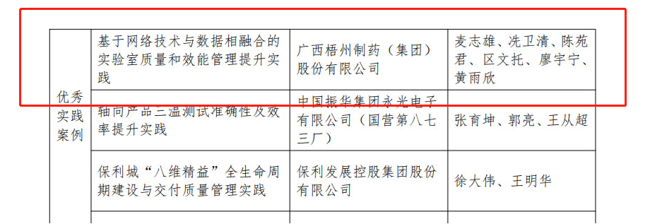 梧州制藥《基于網絡技術與數據相融合的實驗室質量和效能管理提升實踐》入選2023年企業質量管理優秀實踐案例