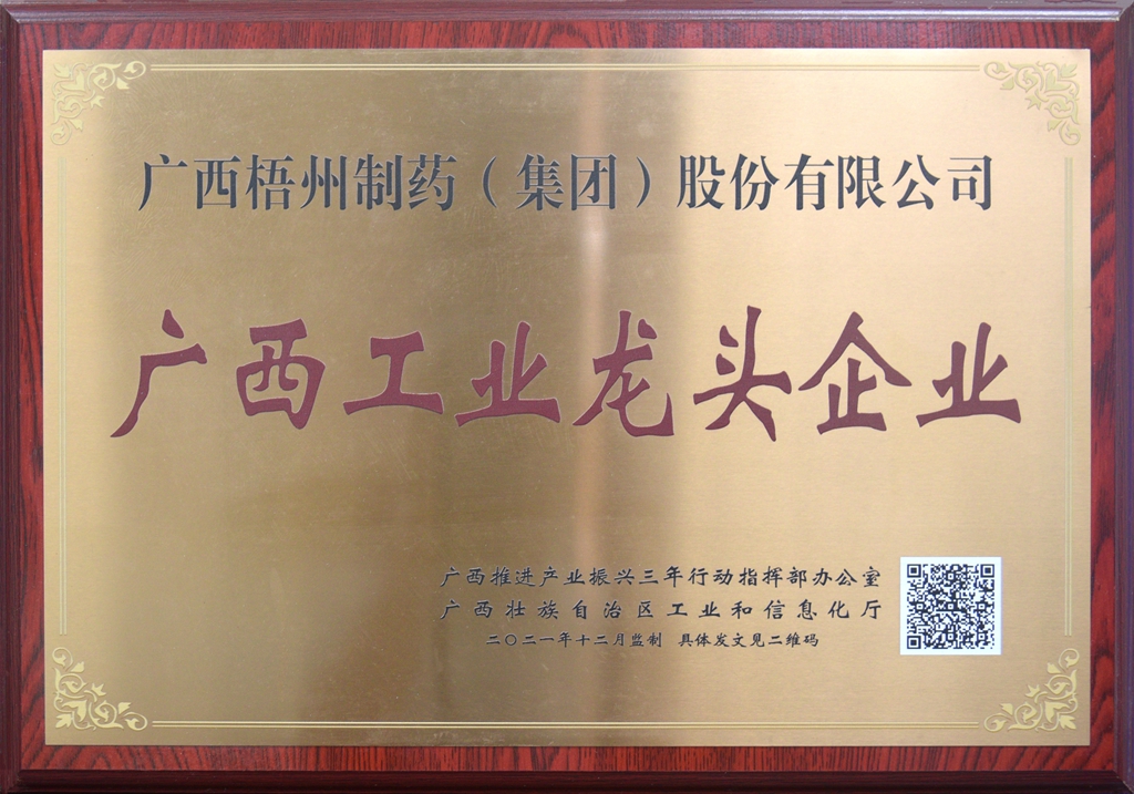 廣西梧州制藥(集團(tuán))股份有限公司獲評廣西工業(yè)龍頭企業(yè)