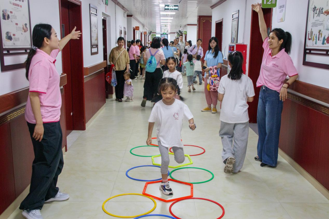 在“快樂運動促成長”體驗區、兒童健康科普館,醫護人員通過互動游戲和訓練向職工家庭普及兒童急救、生長發育及視力保護等知識,把健康理念科普到每一個家庭。