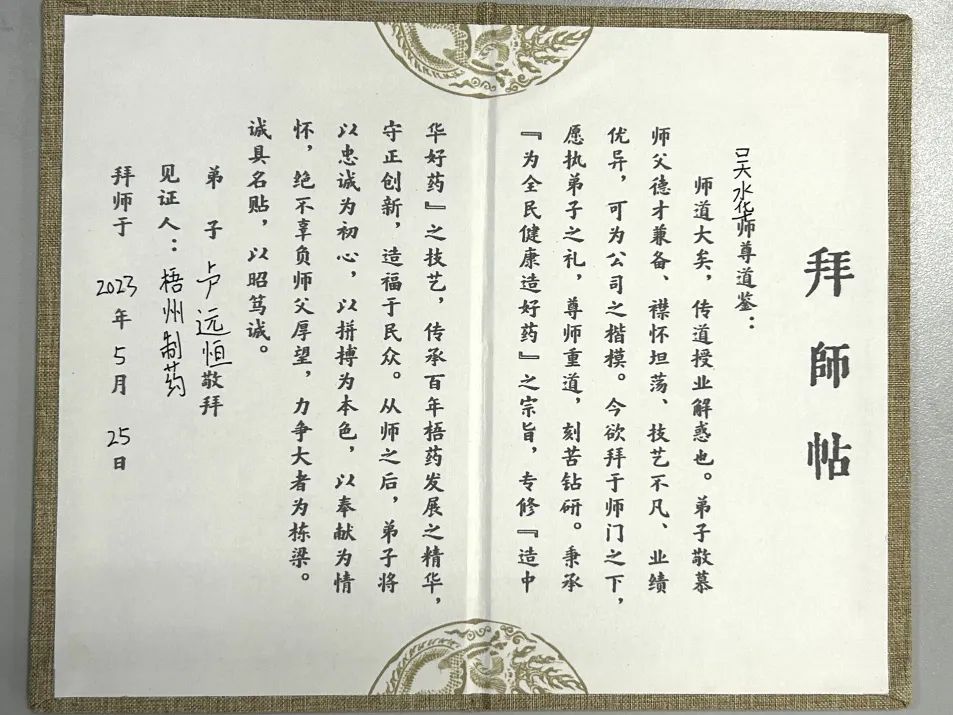 梧州制藥盧遠恒自述金牌師徒情誼