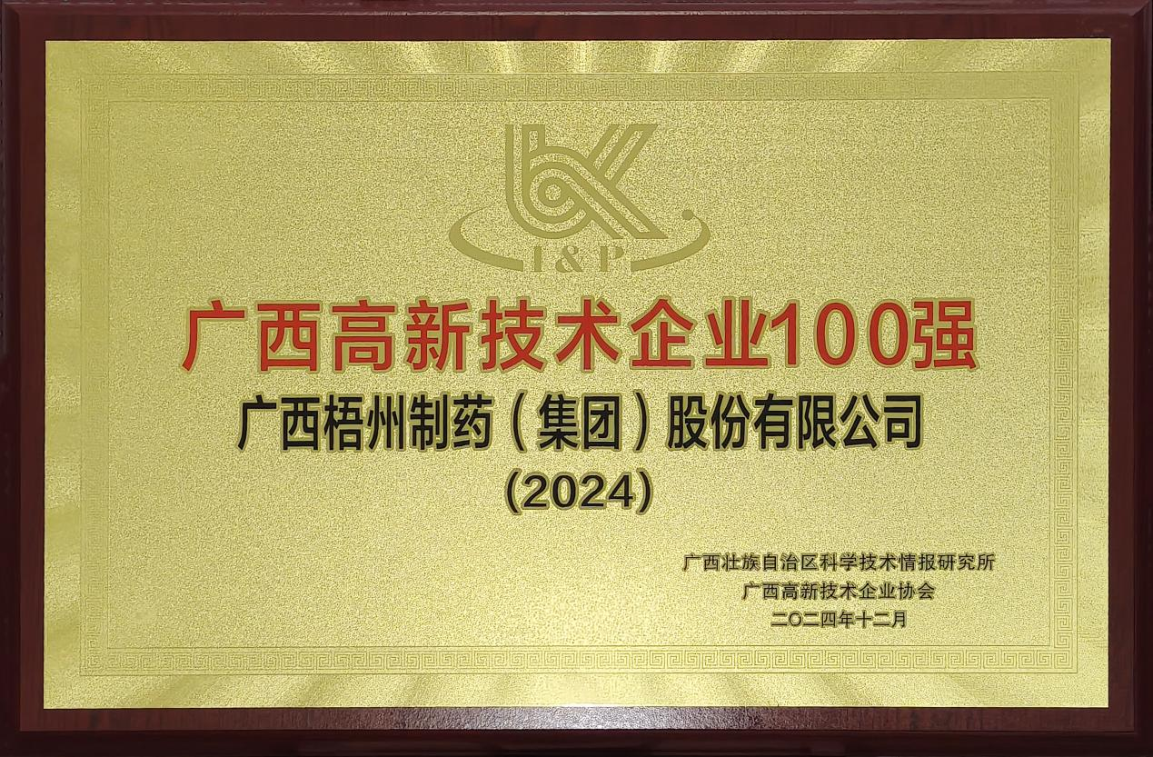 梧州制藥獲頒2024年廣西高新技術企業百強牌匾 連續兩年蟬聯