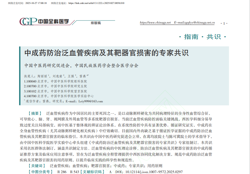 此次發布的專家共識,由葛均波院士、陳可冀院士擔任學術指導,匯聚了43位來自全國19個省、自治區、直轄市,專業領域覆蓋心血管、腦血管、腎臟、眼、外周血管及內分泌等泛血管疾病核心方向的權威專家。