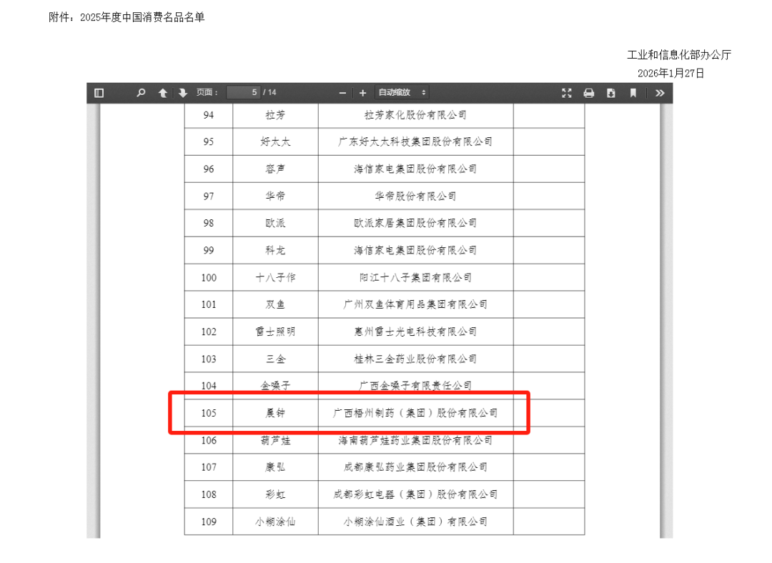 近日,工業和信息化部辦公廳公布了2025年度中國消費名品名單,中恒集團旗下廣西梧州制藥(集團)股份有限公司“晨鐘”品牌憑借卓越的產品品質、深厚的文化底蘊成功入選名單。據悉,2025年度中國消費名品評選是工業和信息化部主導的首次國家級消費品牌評選活動,核心目標是打造代表中國品質的消費名品方陣,推動消費升級與全球知名品牌培育。“晨鐘”品牌的成功入選,標志著其已躋身國家級優質消費品牌行列,成為梧州制藥品牌建設歷程中的重要里程碑。