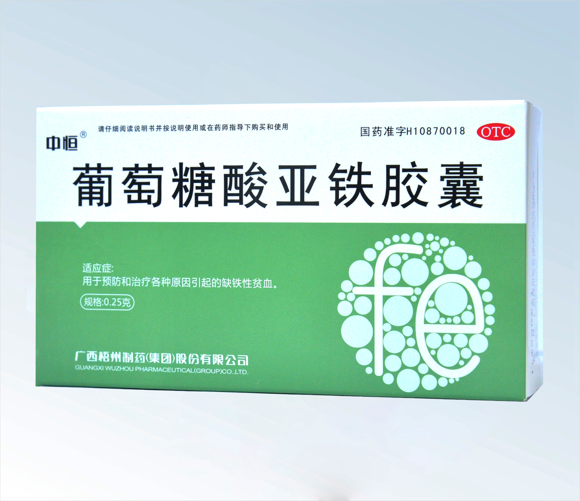 藥品成分本品每粒含葡萄糖酸亞鐵0.4克。 輔料為二氧化硅、硬脂酸鎂。 分 子 式:C12H22FeO14·2H2O功能主治用于治療各種原因引起的缺鐵性貧血。產品優勢中恒牌、效果好