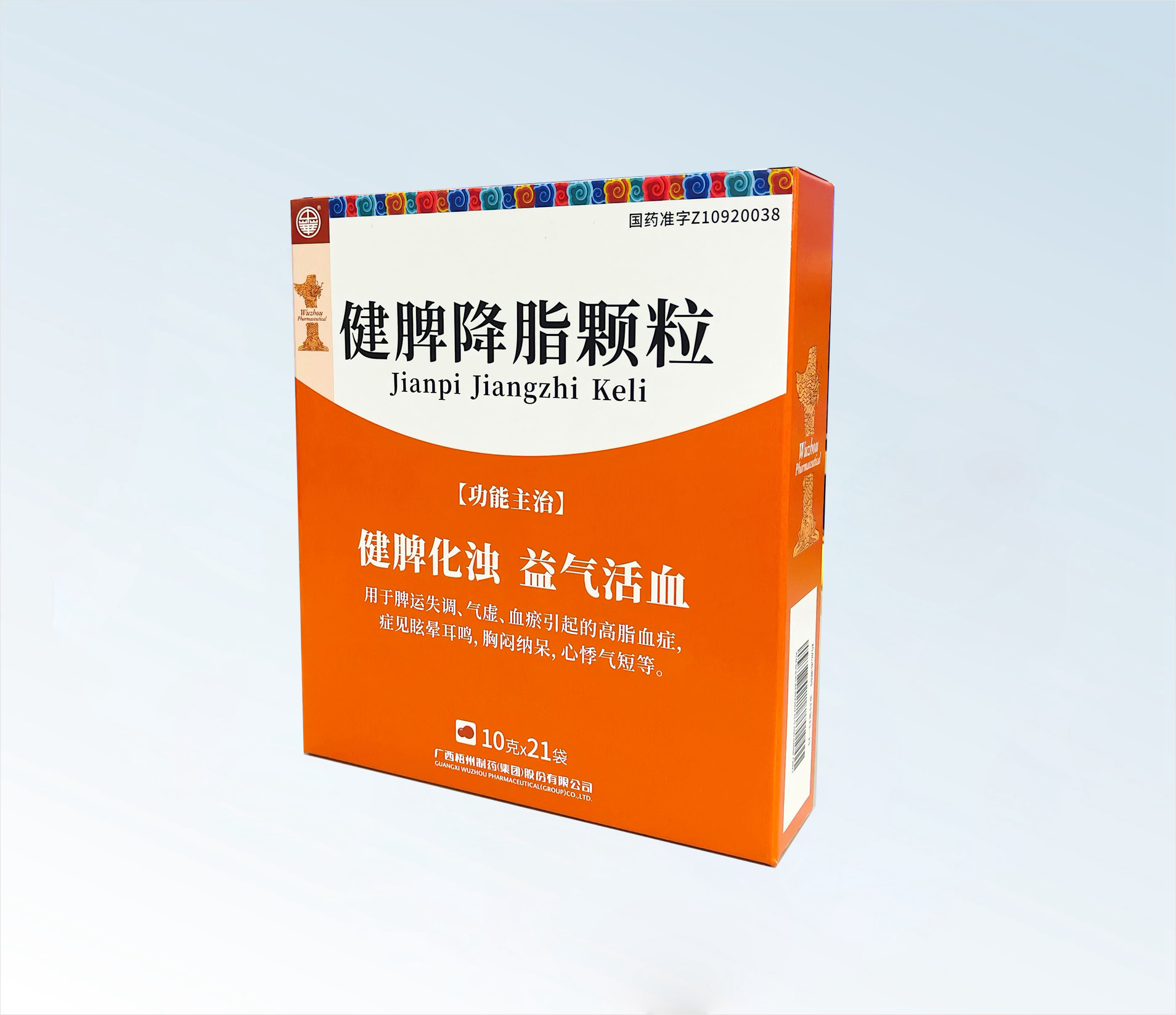 【藥品名稱】通用名稱:健脾降脂顆粒漢語拼音:Jlanpl Jiangzhi Keli【成份】南山楂、澤瀉、丹參、黨參、靈芝、遠志。【性狀】本品為棕褐色顆粒;氣微香,味苦、微甜。【功能主治】健脾化濁,益