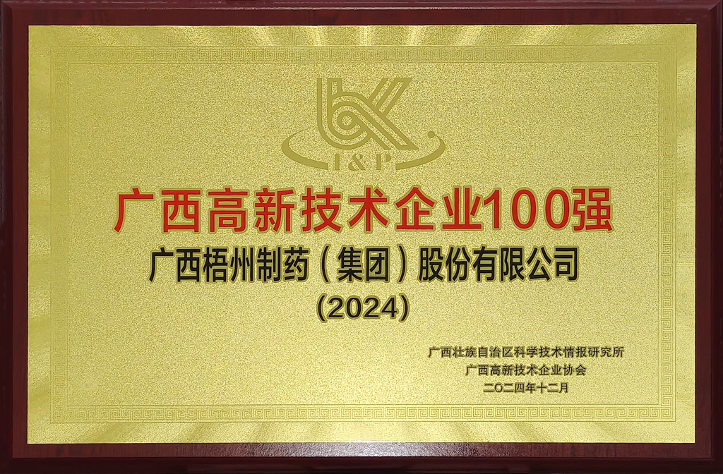 廣西梧州制藥(集團)股份有限公司獲評2025年廣西高新技術企業100強